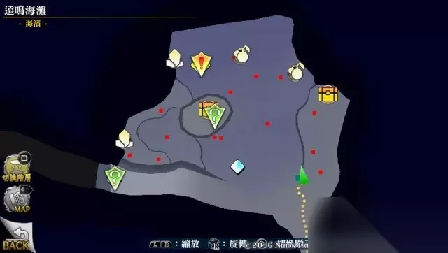 通关后继续前进,到达海岸,获得奖杯隆起珊瑚の森。 补充一个漏点,打完第一场迎击战后会获得柔质纤维X2,可以去完成支线任务。 «12345678910»友情提示:支持键盘左右键"←""→"翻页 海滩地图分布如下,宝箱内容:T的笔记2,第二个宝箱无法拿到,两个绿色问号不必理会,直接剧情。