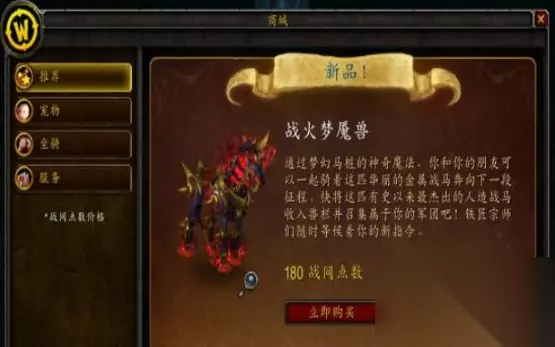 在魔兽世界中有很多坐骑,其中“战火梦魇兽”是首个派对坐骑,这个坐骑是会有特殊的效果,非常炫酷,有玩家想知道是否值得购买,接下来小编为大家带来了详细介绍。