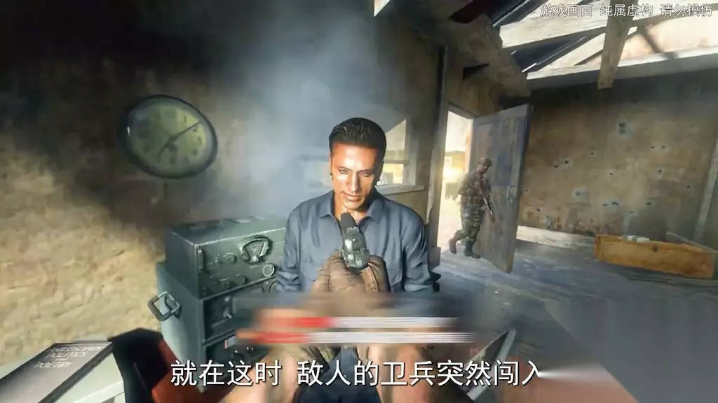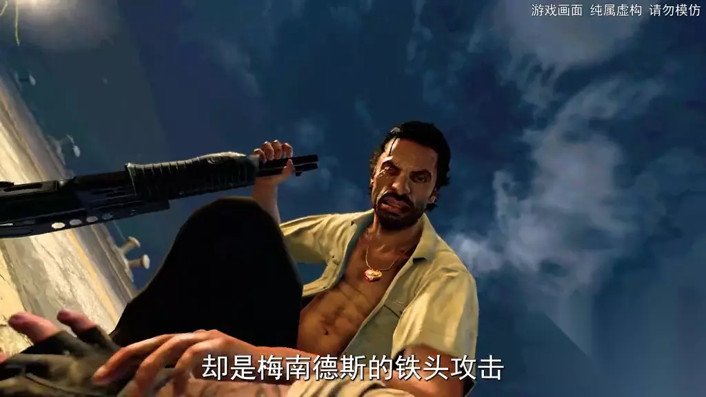 这是使命召唤中最大的反转之一。在菠萝脸的指引下,伍兹来到天台,瞄准蒙面的敌人扣下了扳机。此时菠萝脸却露出了诡异的笑容,意识到不对劲的伍兹,迅速朝蒙面人跑去。当他揭开面罩,看到的却是队友的脸庞。(中弹声)愤怒的伍兹掏出了手枪,却突然被击倒在地。就在此时,真正的敌人终于登场。伍兹试图反抗,却被击穿了膝盖,他试图捡起手枪反沙,而换来的,却是梅南德斯的铁头攻击。 那么梅南德斯到底有多厉害?当他被人持枪威胁时,居然一拳打爆了无线电,并且起身直面梅森的枪口。(你想要沙了我对吗?就在这时敌人的卫兵突然闯入,情急之下,他将梅南德斯劫为了人质。(我发誓我会沙了这个魂淡。)。(手雷拉环声)。(你这个沙滩之子!)梅南德斯瞬间扭转了局势。正当梅森落入下风之时,他突然掏出了匕首,可惜七步之内还是手枪更快。梅森趁乱逃跑,试图与队友一起逃离梅南德斯的气场范围。(快!我们就要逃出去了!)就在这时,一架雌鹿直升机迎面而来。(完了我们走投无路了。)正当哈德森陷入绝望之时,直升机突然开火,击退了敌军。(快点!快过来!)眼看救兵从天而降,哈德森得意的摆出了招牌动作,但梅南德斯却比想象中更加厉害。(我们做到了梅森)。这是使命召唤中最艰难的抉择之一。