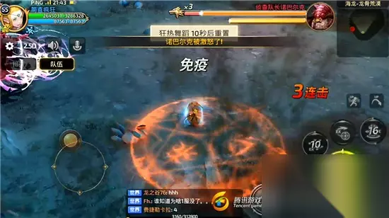 当然本技能在躲避的时候也有一些小技巧,例如我上图所处的地图边缘区域,刚好是诺巴尔克“牛群冲撞”技能的死角,对我们无法造成任何伤害。保证自己不会本技能伤害到后,我们就可以趁此机会多多输出,趁着Boss无法移动造成大量的伤害吧! 【诺巴尔克技能招式7:火焰追踪】