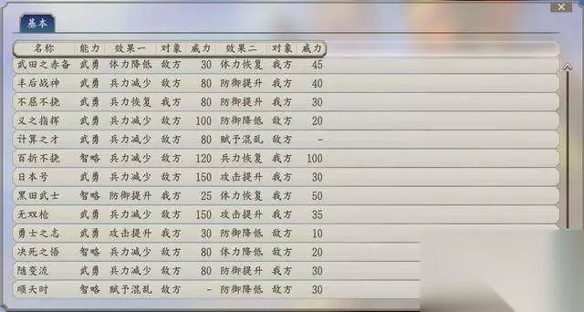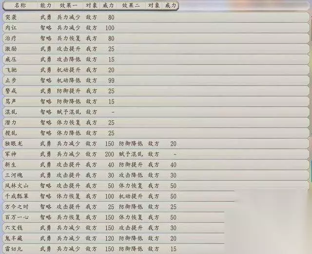 2.战法一览 关于战法,PK版也更新了一些新的战法,以下是截至PK版发布时的战法与效果一览。 图1