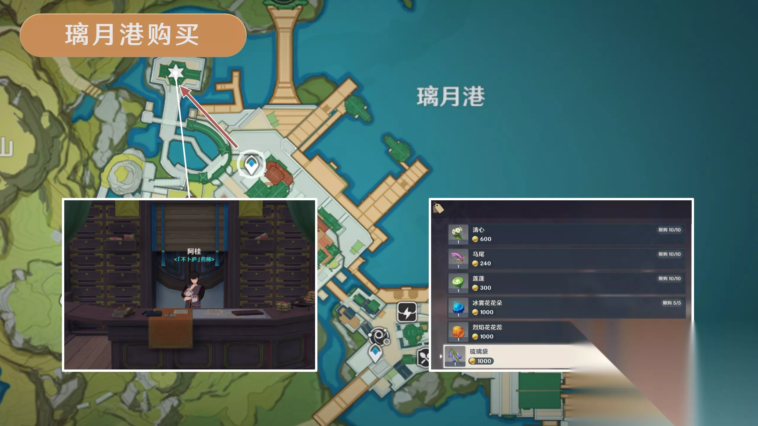 ·【NPC购买】· 璃月港「不卜庐」NPC「阿桂」处购买,共5个。72小时刷新。