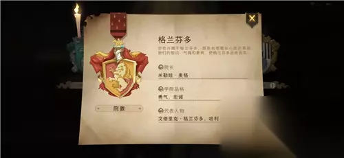 玩家在选择好学院之后就能获得分院的帽子,四种学院学习的魔法种类是不同的,不过因为做了调整,四个学院强度都差不多,所以完全可以按照自己的喜好来选,小编选的是格兰芬多,因为之前选择的勇气选项,直接就是推荐的这个。