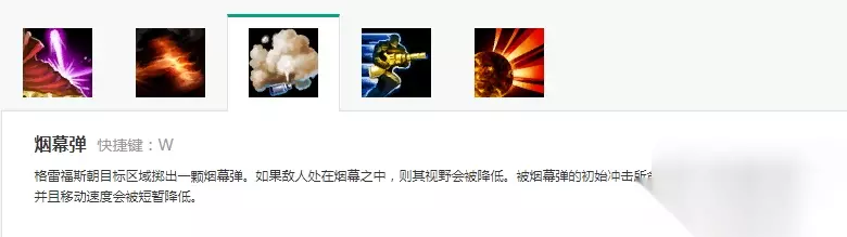 关于【烟雾弹】有一个误区,机制判定属于近视而不是致盲,因为致盲可以被水银解除,而近视几乎没有克制办法,如同梦魇大招一样,除了卡牌大招。 其次【烟雾弹】有两个使用技巧,一是起手减速敌人,为自己创造输出距离和环境;二是团战限制敌人输出,达到反手制敌的效果。