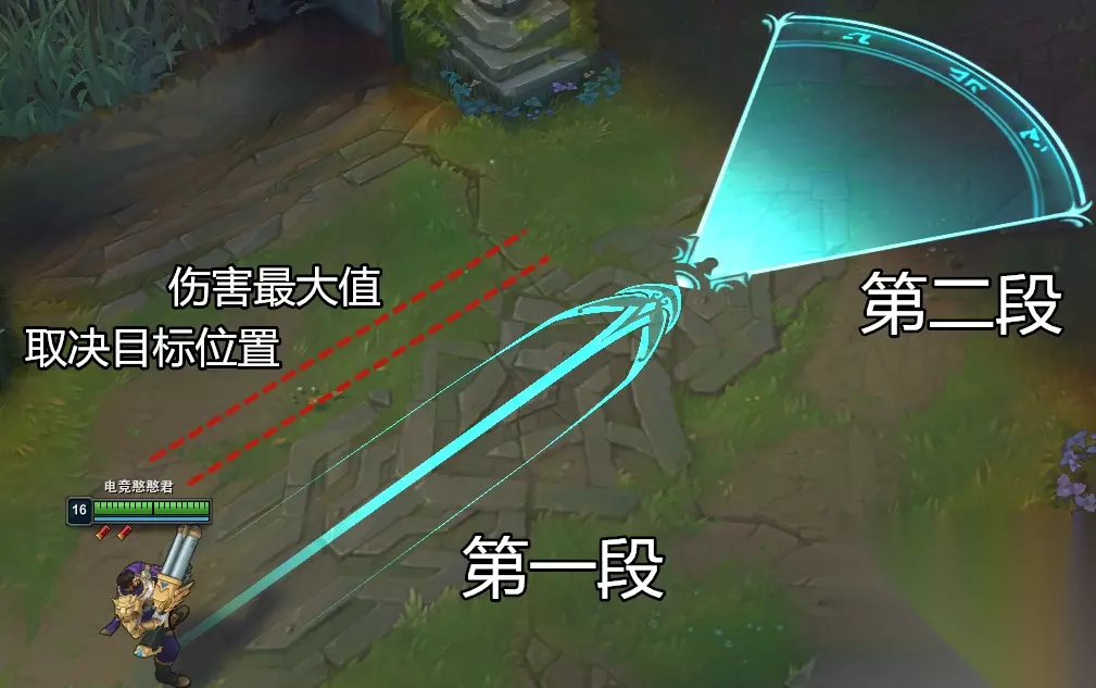 被动采用两弹轮换机制,虽然平A会出现间隔,但攻击设定却新增击退与多段伤害判定,击退只能作用于野怪,多段伤害虽然是男枪输出的核心,但风险非常大,比较依赖玩家走位与操作。