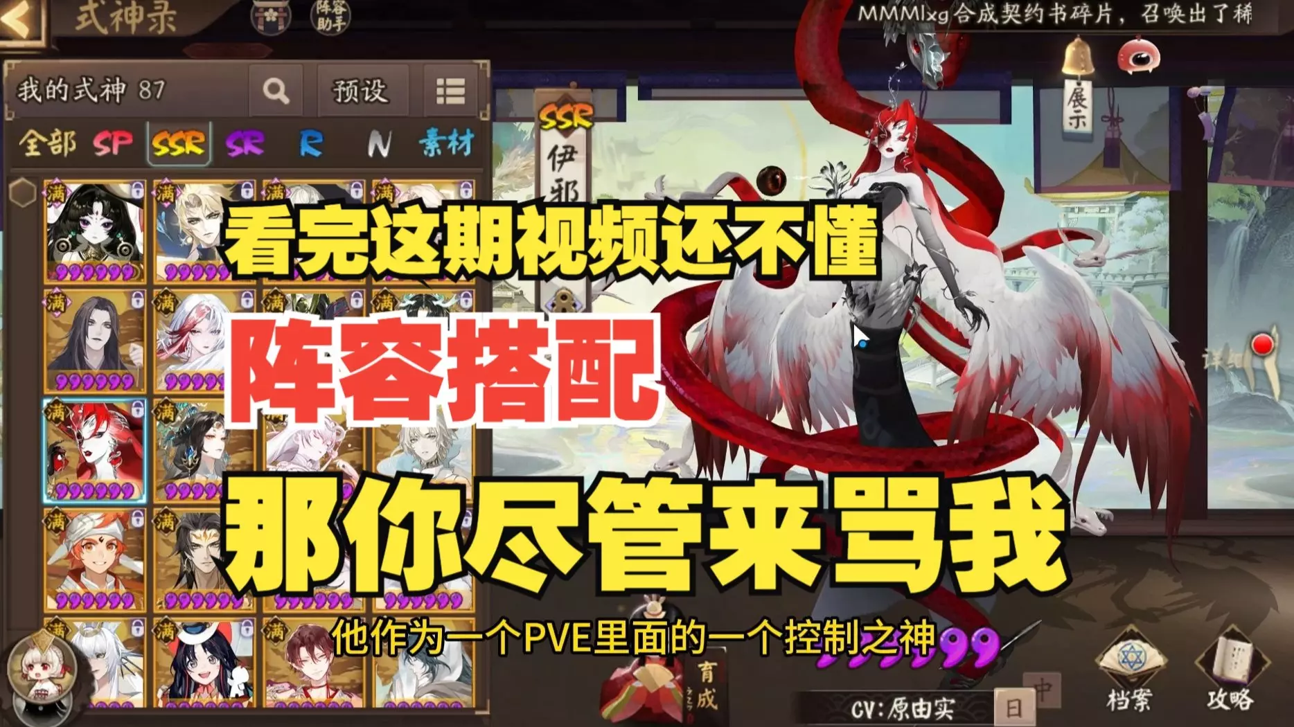本期视频主要围绕大家一直很关心的阵容搭配展开,详细讲解了式神分类,以及如何搭配一个合理阵容的全部内容
