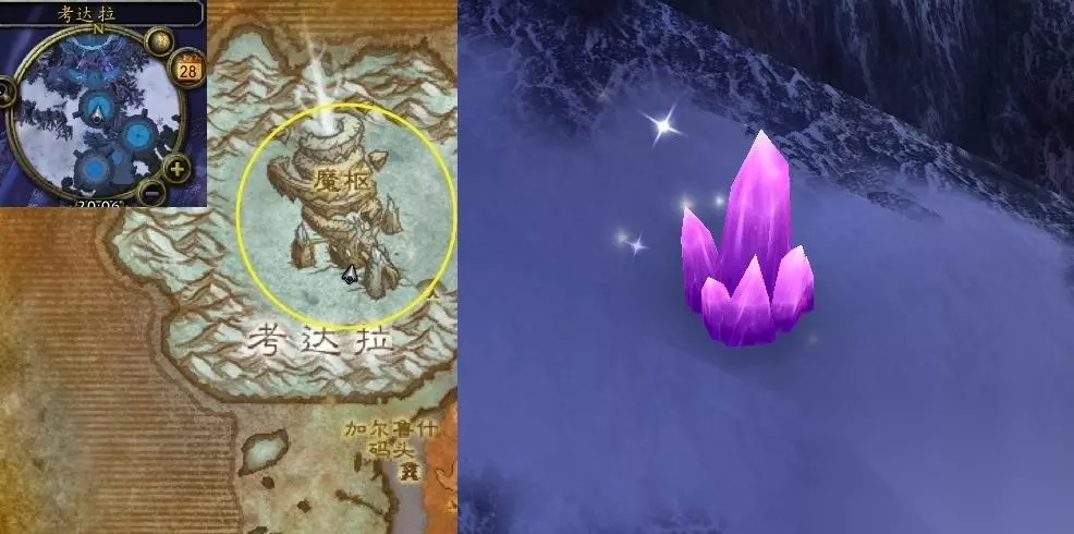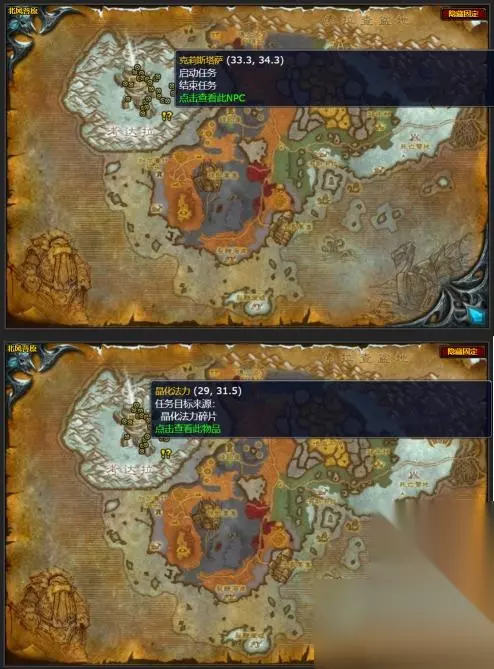 二、任务地点 接取NPC和完成NPC克莉斯塔萨(北风苔原,考达拉,使用【强化过的奥术牢笼】召唤)位置、晶化法力碎片位置