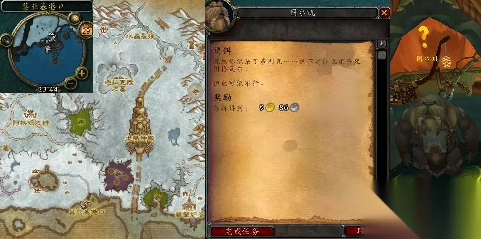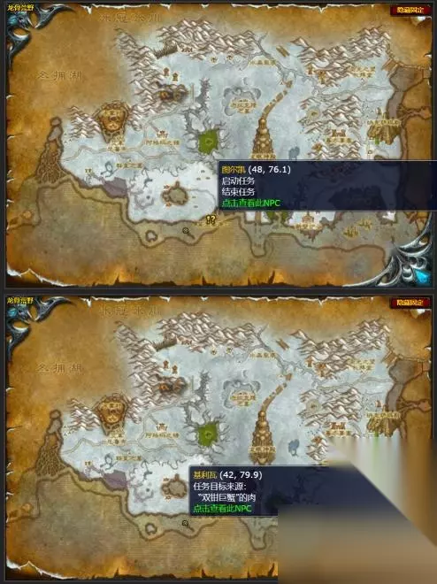 接取NPC和完成NPC图尔凯(龙骨荒野,莫亚基港口)坐标,任务品坐标如下。