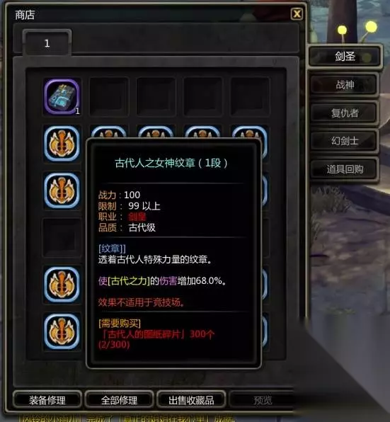 古代之女神纹章 这个纹章只强化古代之力技能,需要使用古代人的图纸碎片在梅拉镇→纹章学者鲁皮纳斯→高阶纹章商店购买,10个等级都可以买到。