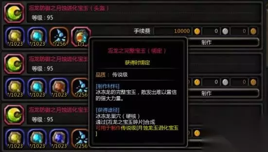 史诗级升级到传说级会消耗冱龙之完整宝玉。