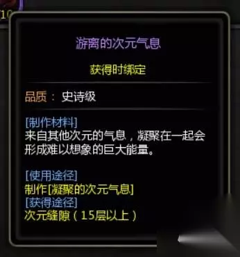 获取方式如下: 需要使用游离的次元气息合成,在次元缝隙可以刷到。
