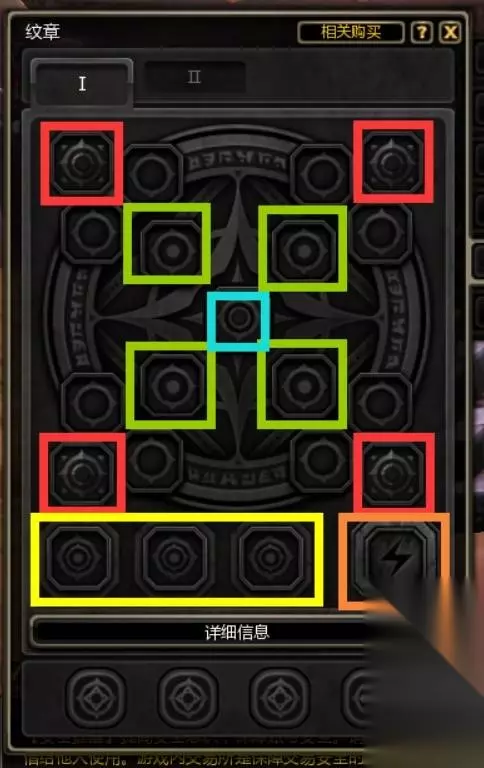 纹章 纹章界面的各个孔位只能放入特定种类的纹章,会根据玩家们的等级逐个解锁。 红色:远征队纹章 绿色:技能纹章 蓝色:特殊技能纹章 橘色:技能升级纹章 黄色:全部普通纹章 其他:强化纹章