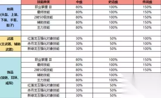 技能龙玉 技能龙玉分为3种(红莲/赤月/新绿龙玉),能够强化不同的技能,具体选择那个更好与职业有关。