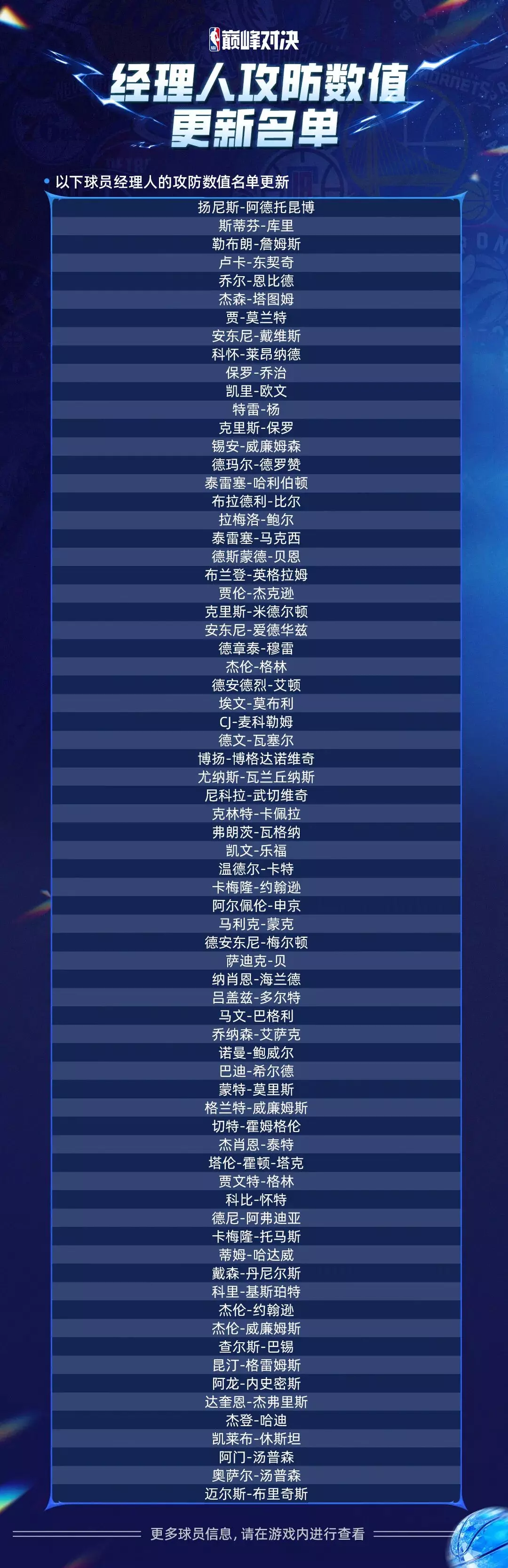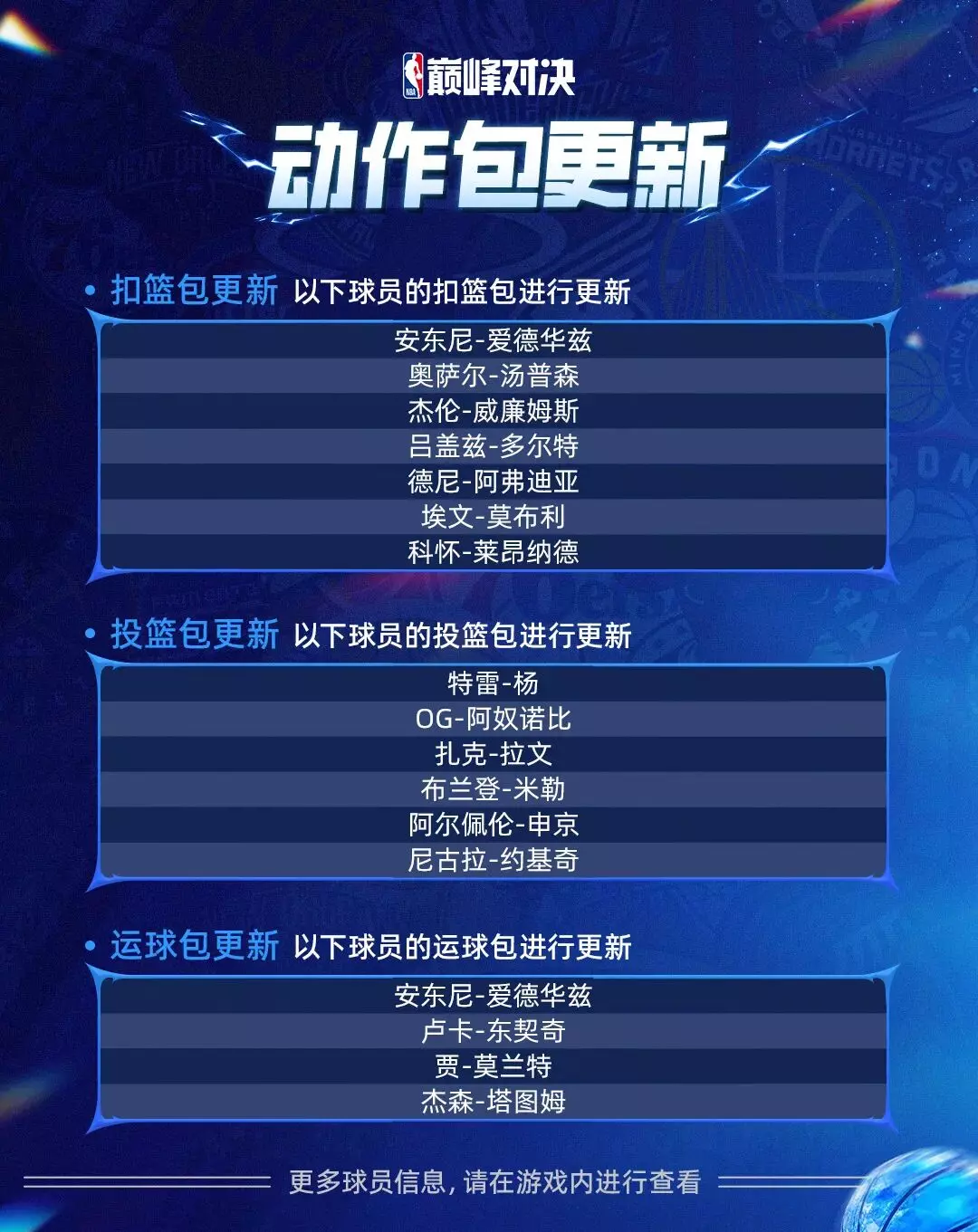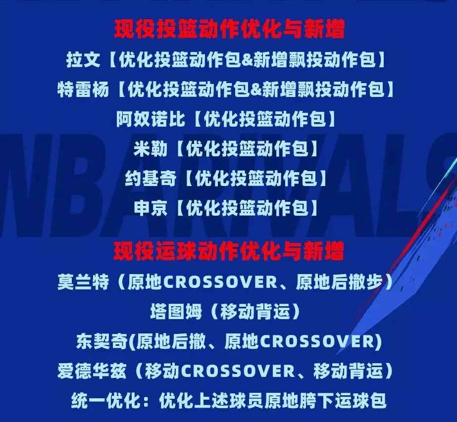 【球员具体更新动作包以游戏上线为准】