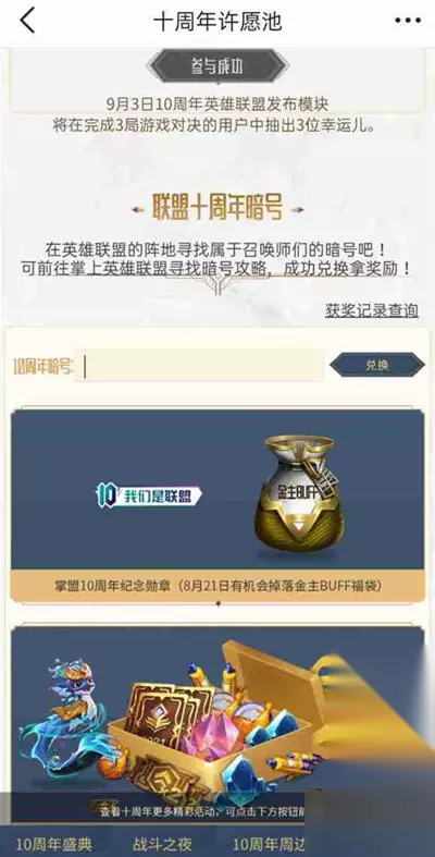 英雄联盟LOL十周年暗号汇总大全: 答案1:我们是联盟 答案2:光明
