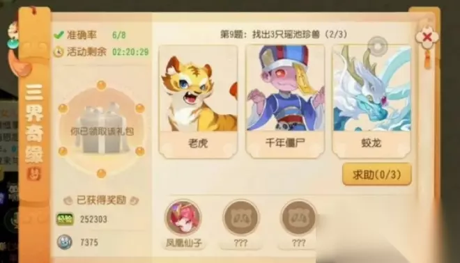 梦幻西游手游三只瑶池珍兽是什么 三只瑶池珍兽分别是: (1)凤凰、蛟龙、噬天虎 (2)芙蓉仙子、雾中仙、猴小仙 (3)蟠桃童子、天兵、凤凰仙子 每次的答案并不相同。