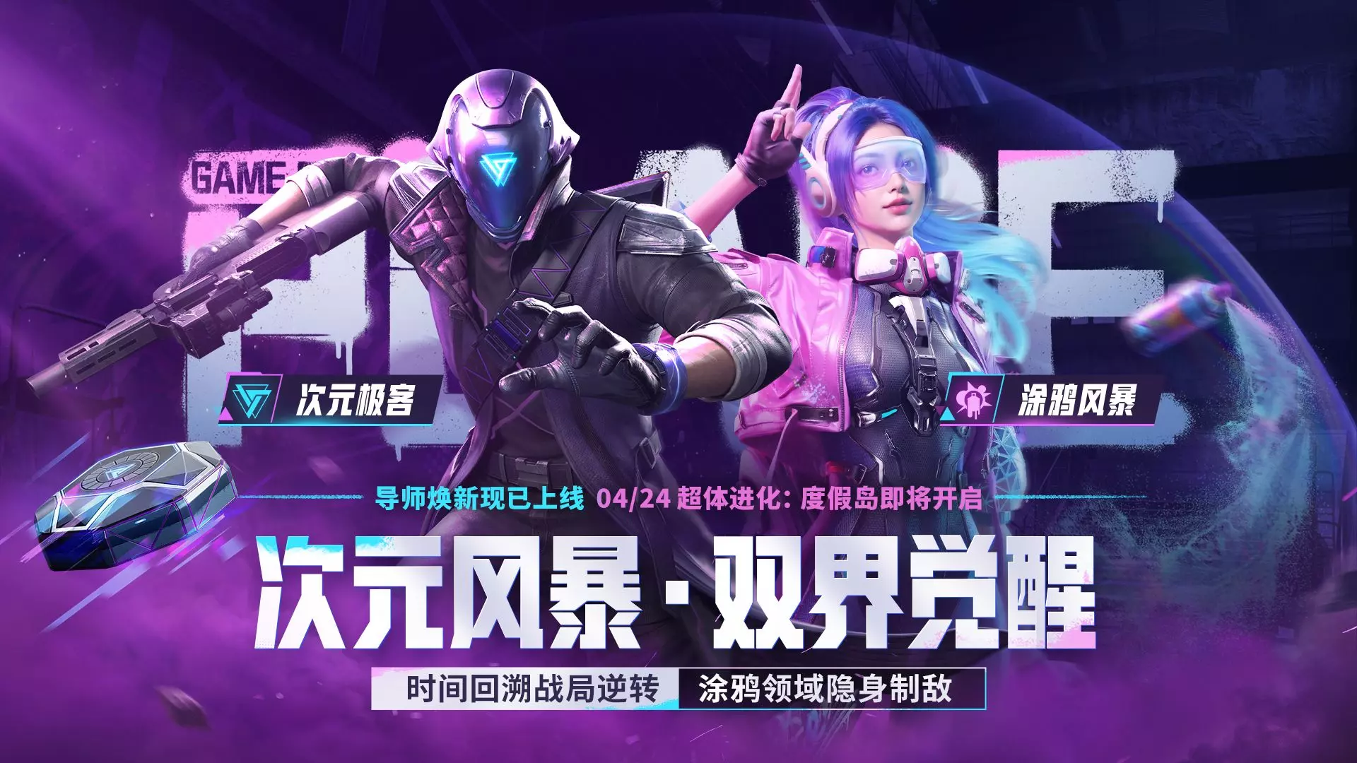 超体全新版本现已上线|限时模式・超体进化:度假岛 4 月 24 日即将上线 超体导师重磅焕新,插件机制全面进化升级,涂鸦风暴重制席卷战场,次元极客战力再度突破,…