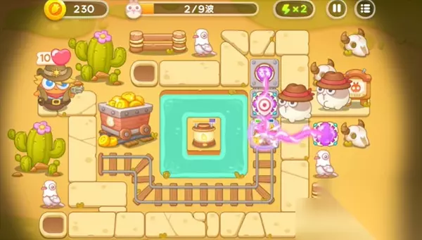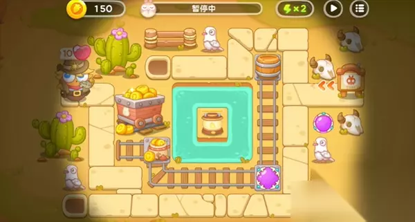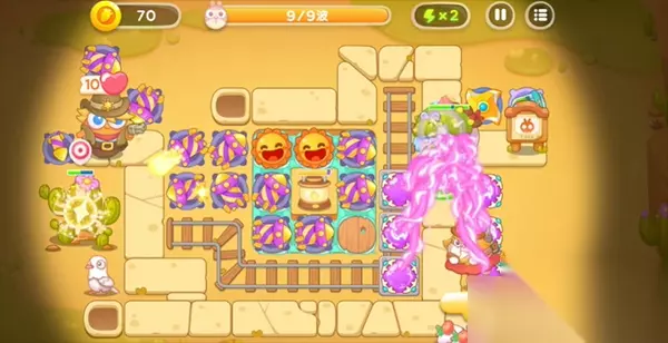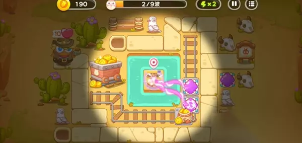 2、在打怪的过程中,要时常拖动移动炮塔来攻击兔子。一旦有足够的金币,优先将装在移动格子上的炮塔升到满级,提高攻击力。
