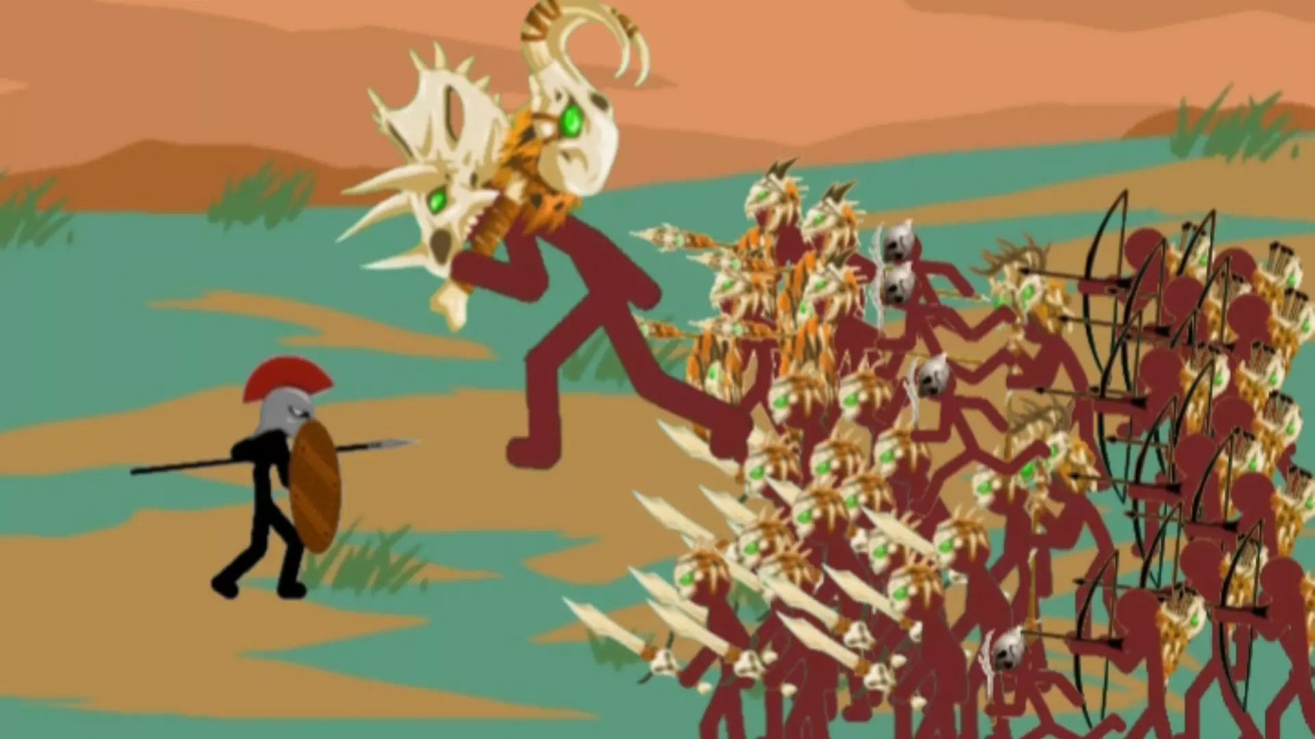 这是《火柴人战争遗产》的游戏内容,展示了号称火战最难任务之一的每周任务第400关的战斗过程,玩家操控各类火柴人士兵与敌方单位对战,完成该关卡挑战。