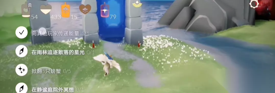 掀翻螃蟹时,尽量飞到高处再操作。这样不仅能避免被螃蟹撞到,还能让叫声覆盖更大范围,有时一次能掀翻好几只。如果能量不足,可以带上小板凳或烟花杖随时充能。选择穿透力强的叫声效果更好,比如某些先祖收集到的尖锐声音,能让螃蟹更快晕倒。完成任务后别急着走,被掀翻的螃蟹可以捡起来玩,虽然没啥实际用处,这些家伙过一会儿就会恢复,再次变得凶巴巴的。如果想重复掀翻同一只螃蟹,可以离开区域再回来,它们就会重新刷新。