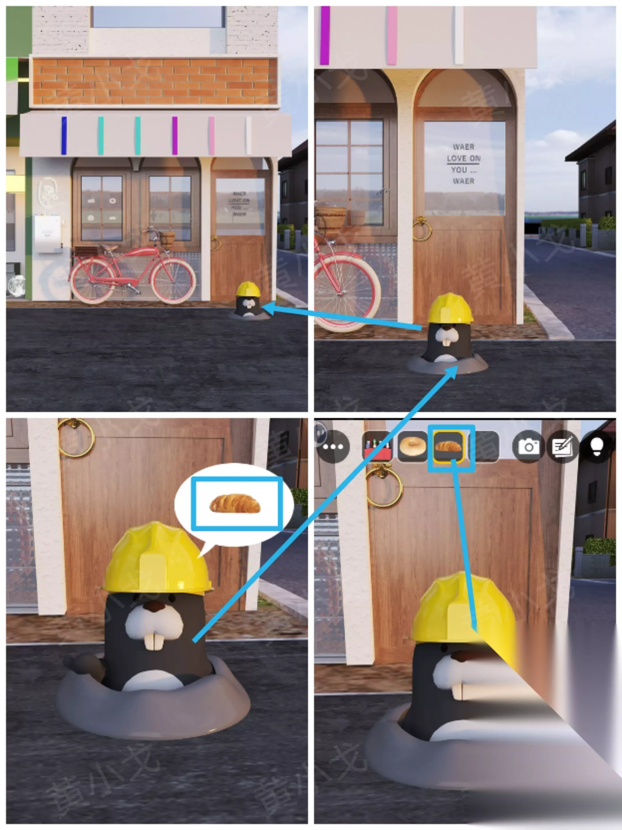 [街道-咖啡店门口] 5.点击门口的土拨鼠,拿【面包】给它
