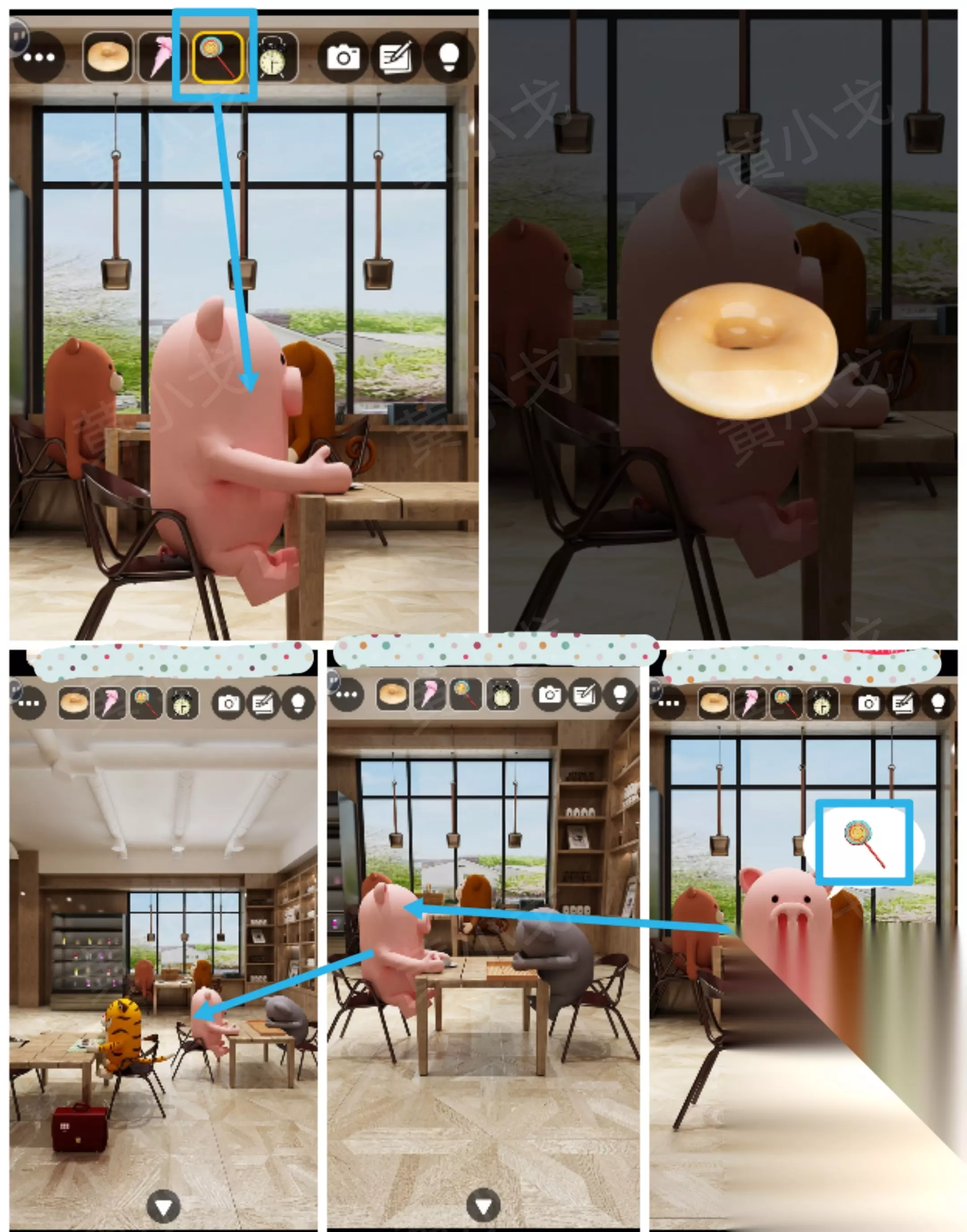 [咖啡店] 15.点击猪猪,拿【棒棒糖】给它,获得【甜甜圈】