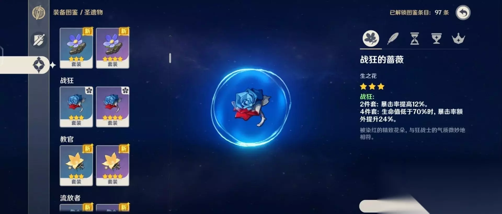 如果暂时凑不齐绝缘四件套,可以考虑2绝缘+2宗室或2绝缘+2如雷的过渡搭配。前者能进一步提升大招伤害,后者则增强雷元素反应效果。不过这两种方案都不如绝缘四件套全面,建议尽早刷齐毕业套装。千岩牢固四件套也可以作为辅助流的选择,它能通过元素战技的协同攻击触发全队攻击力加成,但会牺牲部分输出能力。对于萌新来说,前期可以用战狂或流放者套装过渡,重点保证充能效率即可。