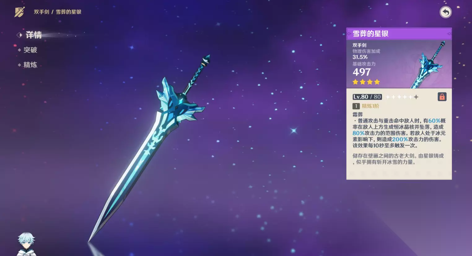 如果想自己锻造这把武器,咱们可以用拿到的图纸去蒙德城找铁匠。锻造需要北陆双手剑原胚、水晶块和星银矿石,材料收集齐全后就能制作。雪山大剑的被动效果对冰属性角色有不错的加成,适合搭配冰系角色使用。
