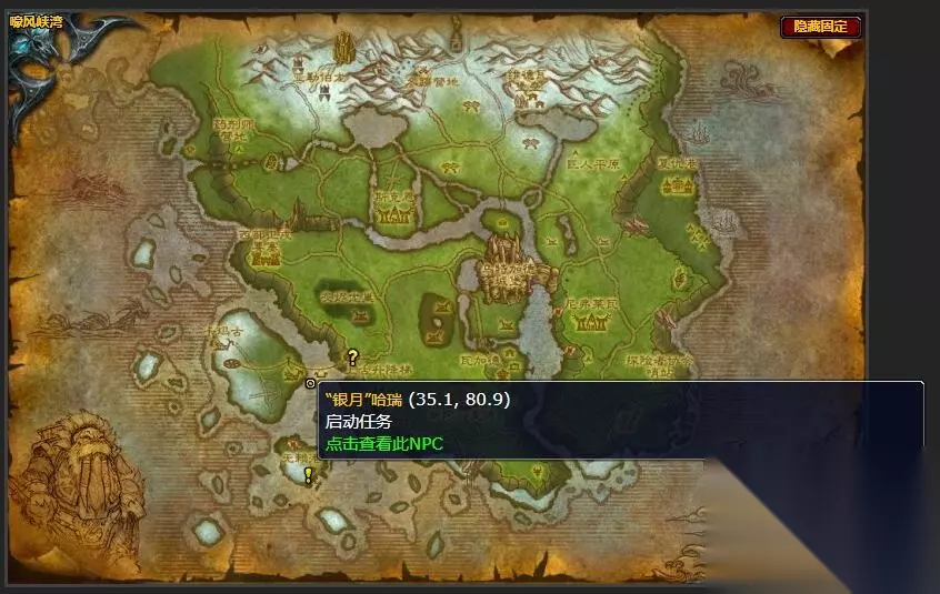 《魔兽世界》wlk风暴愤怒法杖任务攻略 接任务NPC:“银月”哈瑞 “银月”哈瑞位置图 坐标(35.1,80.9)