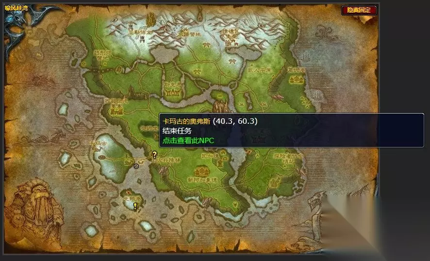 交任务NPC:卡玛古的奥弗斯 卡玛古的奥弗斯位置图 坐标(40.3,60.3)