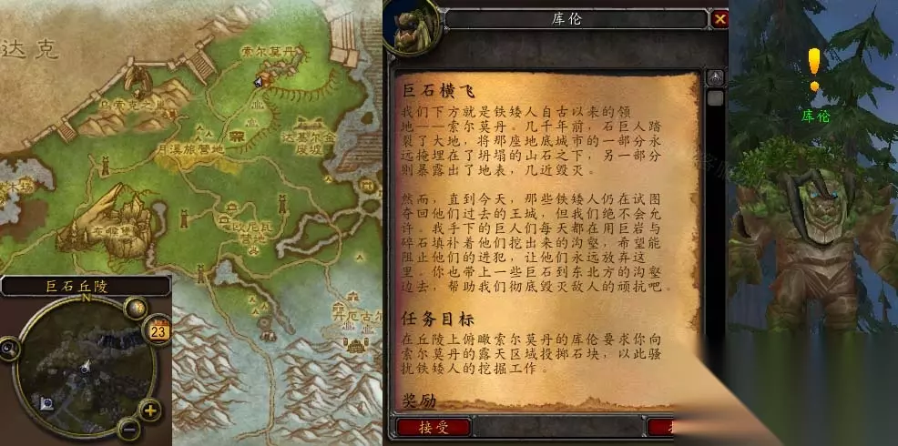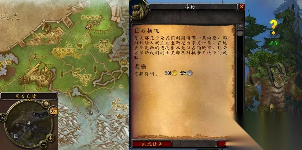 魔兽世界怀旧服wlk巨石横飞任务怎么做呢?不少小伙伴杜宇这个巨石横飞任务的做法不了解,其实想要完成这个任务还是需要一点技巧的,如果大家实在不清楚这个巨石横飞任务怎么做可以看看这篇233乐园攻略,大家看完就知道了。 怀旧服wlk巨石横飞任务怎么做 接取等级:72 接取NPC:库伦(灰熊丘陵,巨石丘陵) 完成NPC:库伦(灰熊丘陵,巨石丘陵) 奖励声望:无 任务开始: