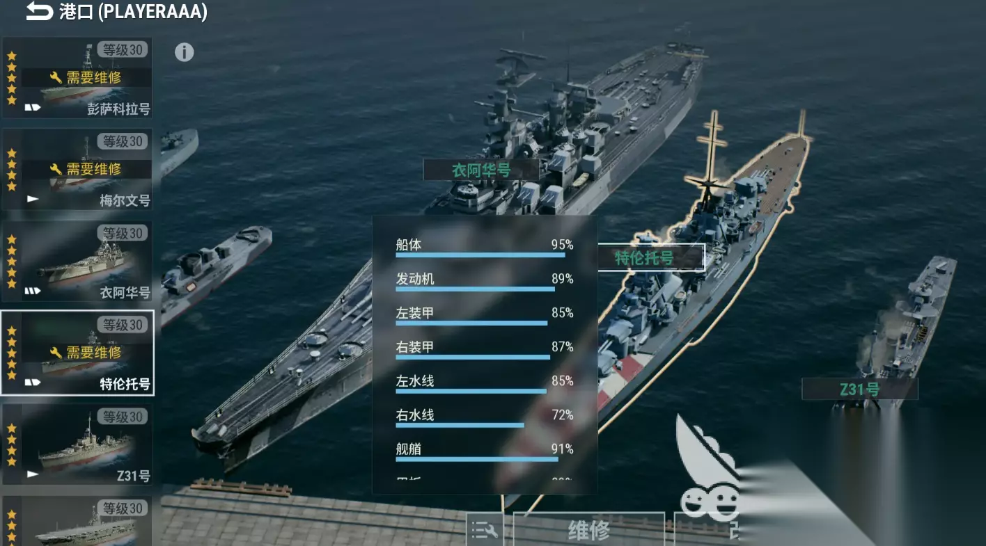 游戏内的舰队包含有驱逐舰、巡航舰、战列舰、护卫舰。 驱逐舰在游戏当中,是输出能力最强的一种战舰,它们一般附带有轰炸能力极强的主炮,并且也有着极强的移动速度,但是在游戏当中他们的血量是比较薄的,所以需要有战列舰,以及巡航舰的保驾护航。 巡航舰在游戏当中主要的功能,是为其他的队友提供视野优势,并且部分巡航舰也附带有潜艇效果,可以通过游击战的方式,将敌人击沉。 战列舰在游戏内,是耐久性最高的一种战舰,一般会充当游戏内的强排坦克。 护卫舰则类似于辅助角色,它可以用于援助其他的舰队,玩家可以根据这些舰队的游戏性质,进行合理的购买和选择。