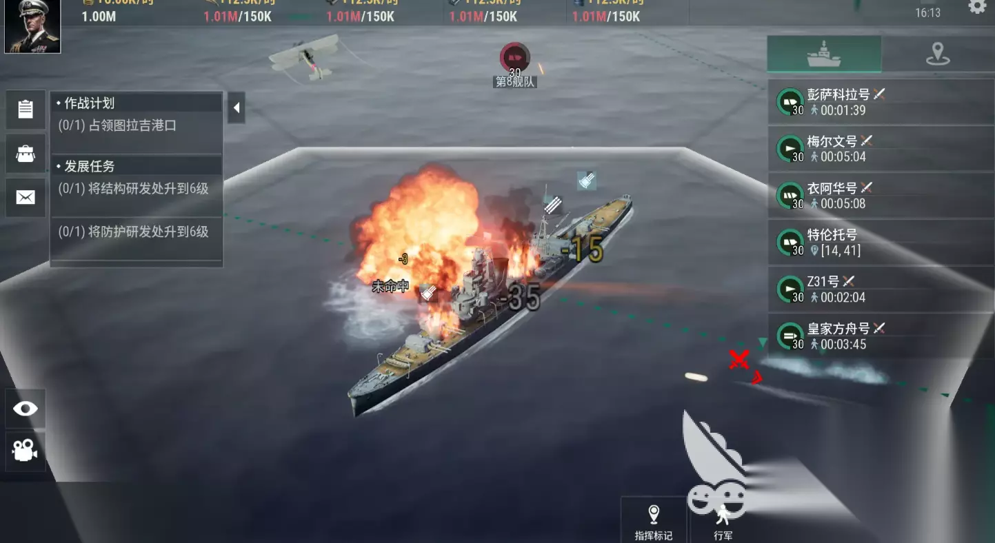 当然在游戏战斗前期,玩家还需要进行合理的武器安装,其中,玩家需要根据自己主炮和副炮的推荐类型,选择其中攻击能力最强的主炮就行,当然,如果玩家的背包当中,并未购买更多的主炮或者导弹,也可以使用下位的装置,进行替换。 游戏的战斗获胜条件非常简单,玩家只需要将敌方的所有舰队全部击沉,亦或是敌方投降即可,