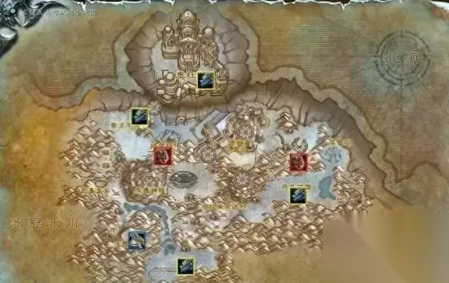 副本入口 地图内共有7个飞行点,部落(2),联盟(1),中立(4),位置如下图所示: