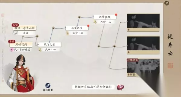这是一个特殊的选择,带来的是一个比较特别的结局,玩家最终还是等来了风小雪的到来。 以上就是小编带来的天涯明月刀手游延寿女天命结局有几种问题的详细解答了,既然各位玩家已经知道了延寿女天命结局介绍一览的话,就不要再等待了,赶快去选择你认为正确的结局吧!