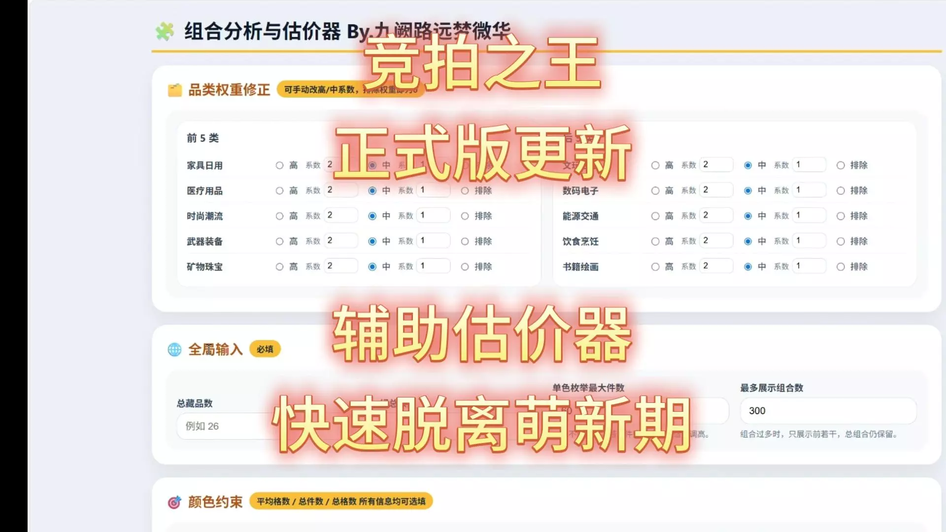 不会用可以看往期视频,有实例教学,可以评论区发表意见疑问,但指指点点请绕道,没逼你用。。。。。。要价格汇总表可以私信扣2,竞拍之王,估价等关键词,有自动回复。 …