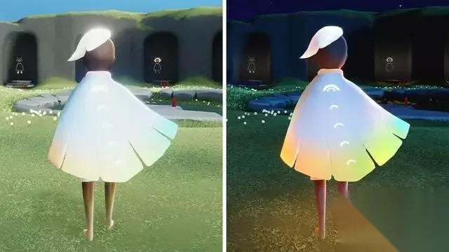 二,彩虹流苏 装饰在耳畔的浮华,染不上你的银发,却能将极致之美重叠,垆边人似月,却又鬓云欲度香腮雪。 三,彩虹斗篷 身披着彩虹头顶星空,寻找最美的花朵,温暖你的笑容——这便是传说中的彩虹斗篷,层层递进,忽明忽暗,如同萤火虫燃烧自己照亮夜晚。 这个斗篷和禁阁白色斗篷一样,在光线强烈的地方,有点晃眼睛,在环境稍微黑暗一点的地方,视觉效果极好。 这件斗篷,不仅色调是彩虹,就连背上的星星图案,也是彩虹。从此在光遇这个游戏里,特殊的斗篷专属星翼,又添上浓墨重彩的一笔。