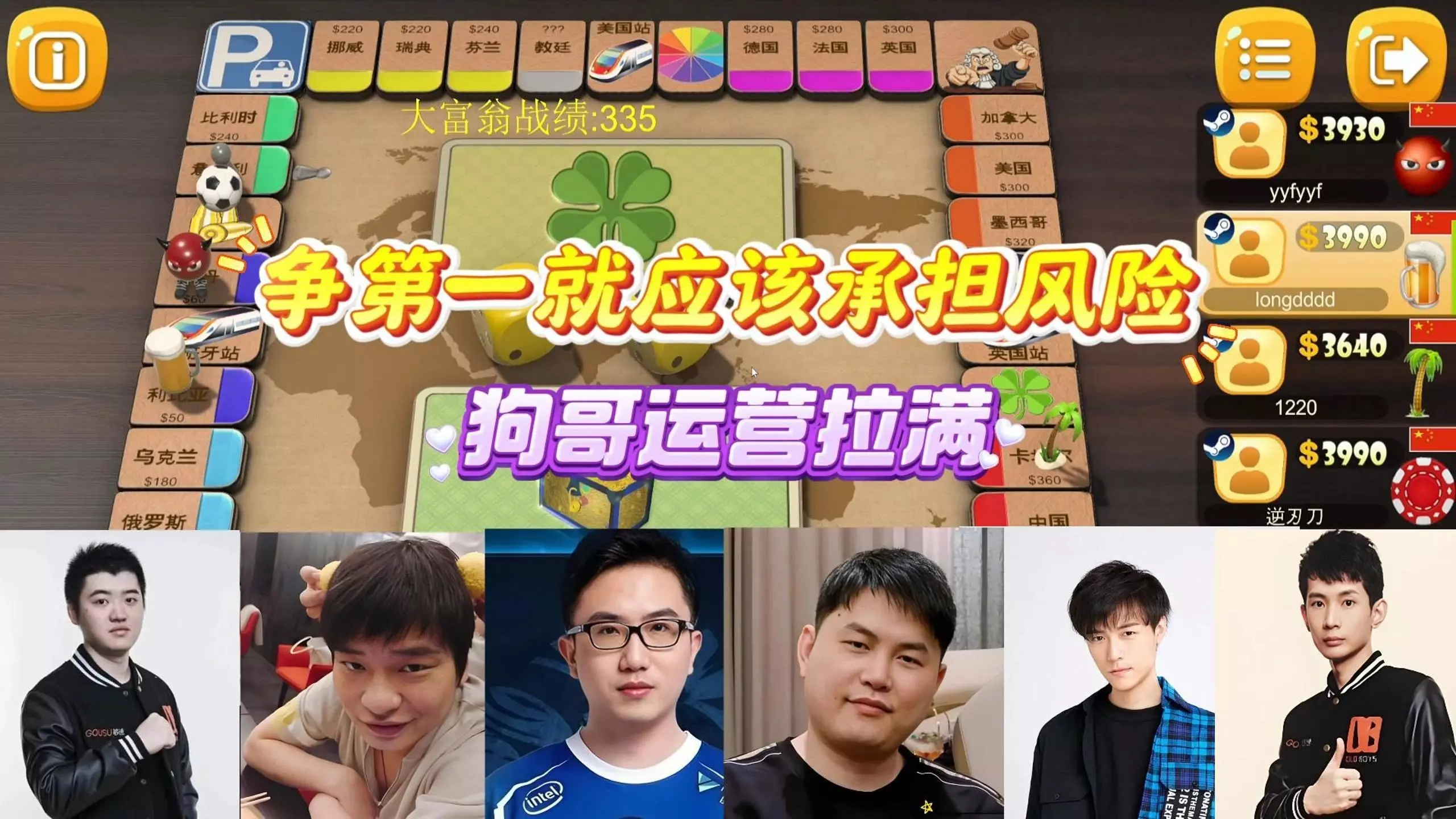 这是主播寅子和表哥、阿飞等人的阿飞大富翁对局,原本占优势的老头在对局中失利到哭腔,寅子参与沈阳地块竞拍,对局里还有地块交换、掷骰子等操作,局势反转充满趣味。