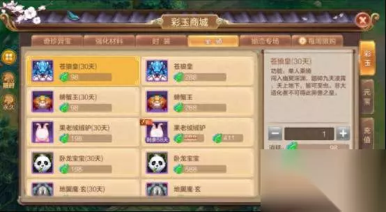 可继续点击右下角图标 查看对方的法宝、宠物、技能等 Q3:如何购买宠物?