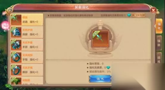 即可进入装备强化界面 PS:若更换装备,该装备位的强化属性将会继承 Q6:如何给自己的装备镶嵌宝石?