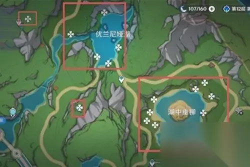原神湖光铃兰在哪里 1、第一处先在地图上找到优兰尼娅湖西侧锚点,传送过去,具体位置就在锚点附近的水潭。