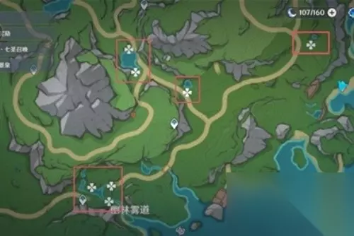 5、第五处在露景泉东边山谷的小路上有6个,直接从传送锚点沿着上山道路走。 6、第六处在幽林雾道的传送点出发,到达西南方向的水边位置,有10个。 7、在游戏商店中也可以用汐藻来兑换湖光铃兰,可兑换30个,每周刷新一次。