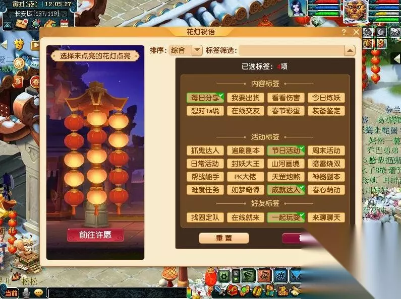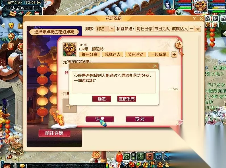 3、许愿时少侠可以选择最为契合自己的一些标签,其他玩家查看花灯后,活动期间内可互相加为好友;