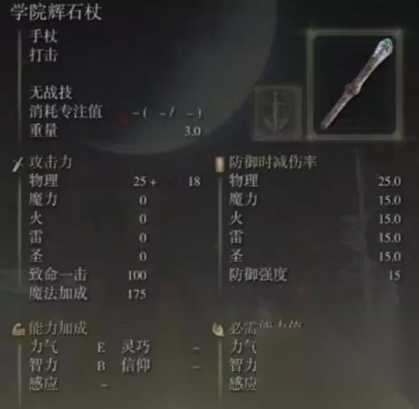 4、学院辉石杖,可以作为前中期的过渡武器使用,智力需求28,相较于观星杖法术加成更高一些。 关于艾尔登法环法杖强度排行汇总就到这里了,有着最新最全的游戏资讯,让您可以及时了解各种游戏相关内容,轻松掌握游戏动态,玩游戏更加轻松!