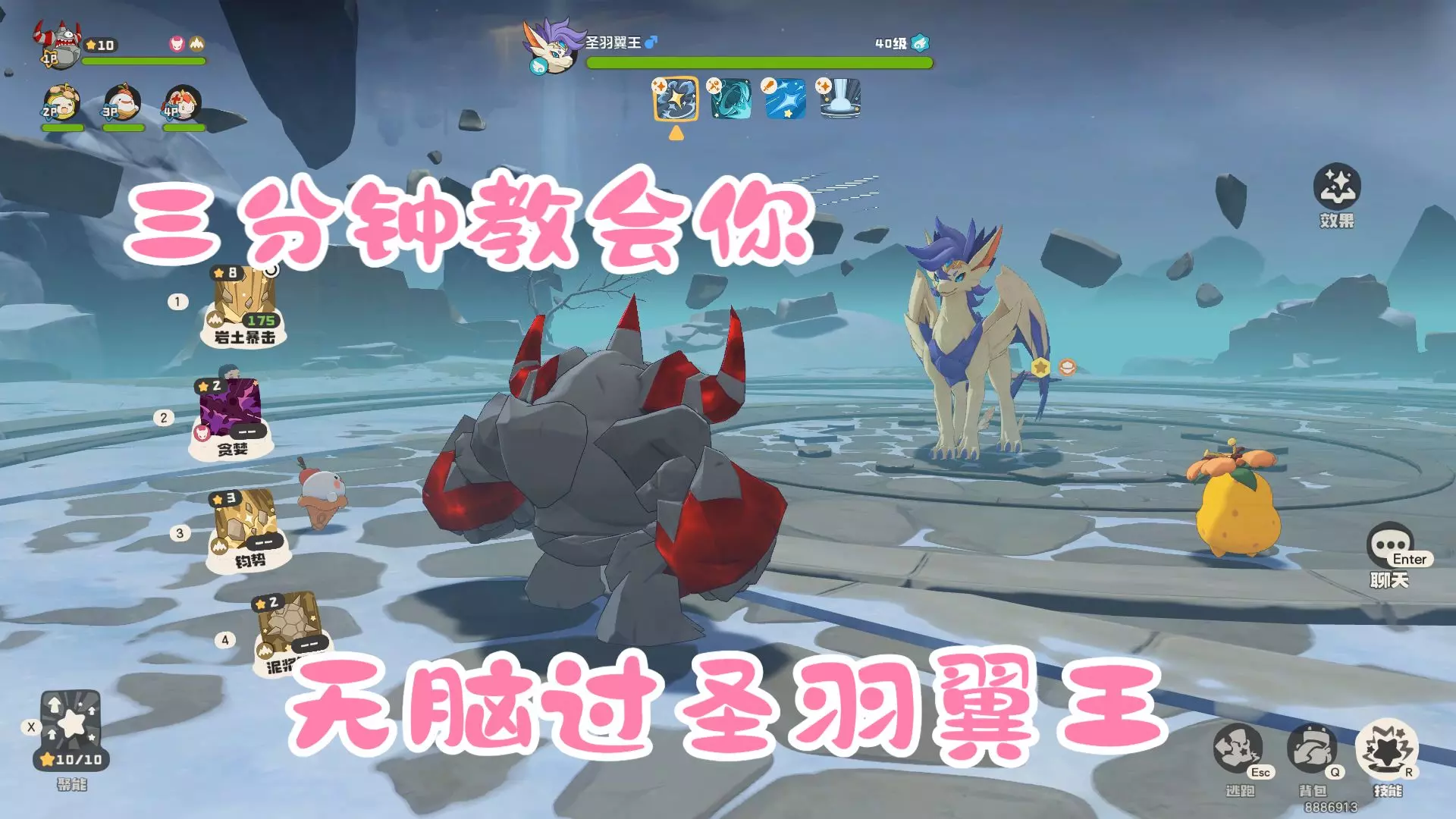 这是《洛克王国》的圣羽翼王对战教学帖,带来手把手喂饭式的打圣羽翼王技巧,展示了对战场景、技能搭配,比如泥浆铠甲等技能,帮助玩家轻松击败圣羽翼王。
