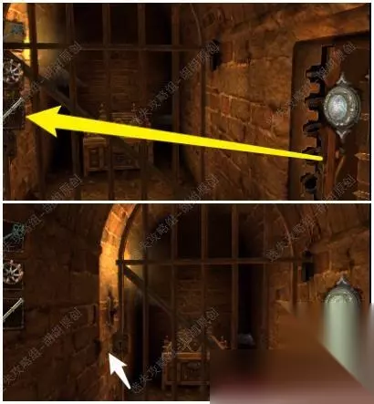 100.进入,右侧旋转打开获得木柄,白箭头处拨开铁块打开铁门, 100.1.2