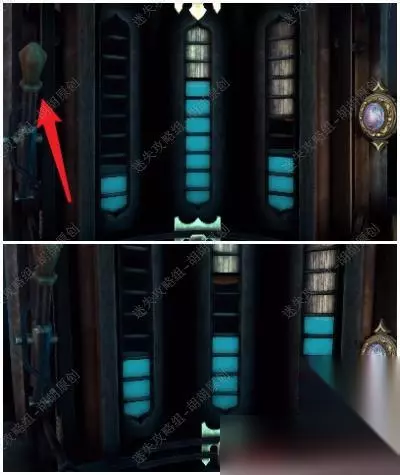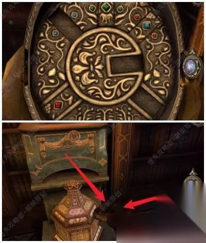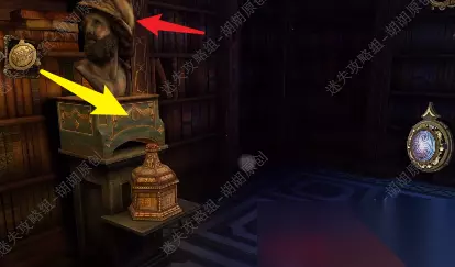 13.文字简直不可描述,所以在此附上一段视频攻略2-1,助大家快速通关~ 14.完成后木制玫瑰处拿到小钥匙,图书馆震动,顺着黄箭头看向雕塑下的小塔,箭头处插入小钥匙,拿到装饰华丽的印章,印章多次点击,拿到装饰华丽的印章 14.1.2