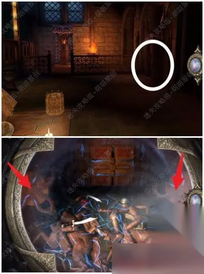 61.石门上放入装饰圆盘,戴上透视镜,转动圆盘至下图,完成后石门打开,进入下一章 61.1