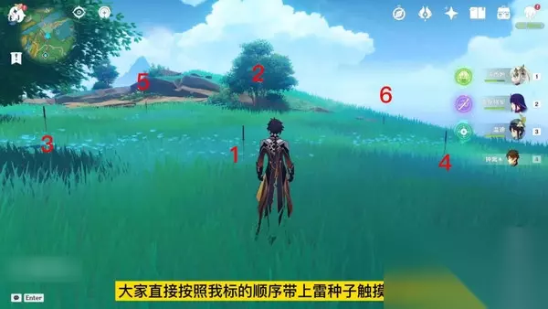 第1处华丽宝箱触摸顺序,只需带上左边雷种子,按顺序依次触碰一下插在周围的剑即可完成解密,可以多次去带上雷种子来触碰