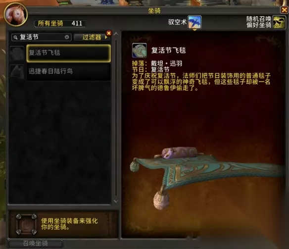 【魔兽wlk2025复活节攻略】 魔兽世界wlk复活节飞毯怎么获得 答:击杀戴坦·迅羽,开篮子概率获得。